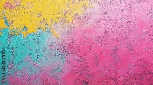 © CLOVER BACKGROUND, Obraz premium Vibrant Pink Yellow Turquoise Gradient Background with Texture