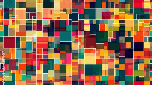 © Dashbow, Fototapeta premium Vibrant Pixelated Geometric Mosaic. Abstract square pixel mosaic background concept