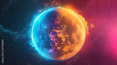 © วรวิทย์ ทรงพลยศ, Obraz premium Vibrant Planetary Explosion in Cosmic Fantasy Landscape