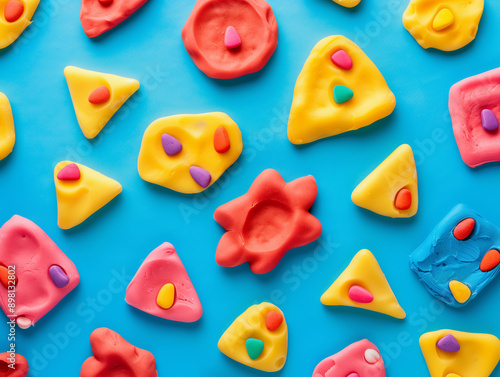 © Sekai, Naklejka premium Vibrant Playdough Shapes Pattern Background for Toddlers: Molding Young Imaginations