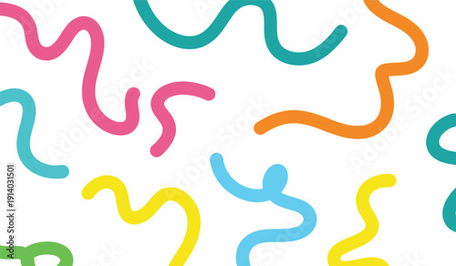 © SMMoniruzzaman, Obraz premium Vibrant, playful, abstract wavy lines pattern in bright pink, teal, and orange on white background. Modern, cheerful design for creative projects.