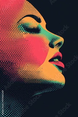 Fototapeta premium Vibrant pop art portrait of a woman with colorful halftone effects