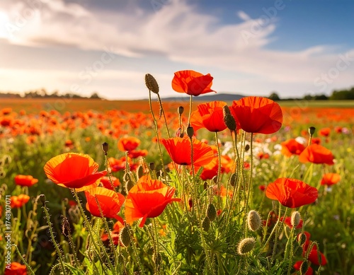 © Ontong, Naklejka premium Vibrant poppy field at sunset (1)