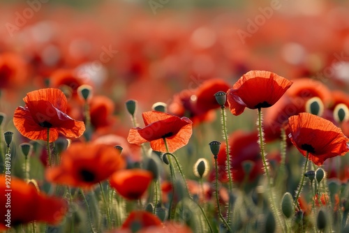 © netrun78, Obraz premium Vibrant poppy field representing remembrance during Anzac Day in full bloom