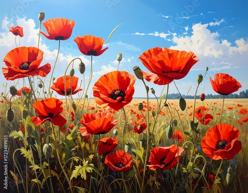 © suka, Obraz premium Vibrant poppy field under a bright sky