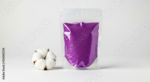 © Irt, Obraz premium Vibrant Pouch Packaging Purple Glitter Cosmetic Product Mockup