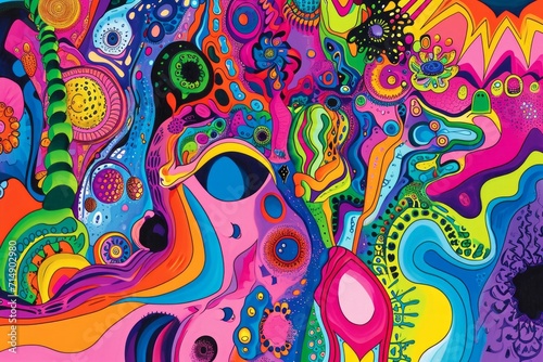 © LadiesWin, Obraz premium Vibrant Psychedelic Artwork with Abstract Patterns