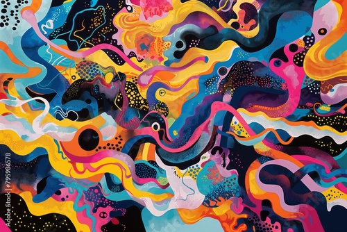 © LadiesWin, Obraz premium Vibrant Psychedelic Artwork with Abstract Patterns