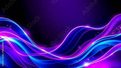 Naklejka premium Vibrant Purple and Blue Neon Waves with Glowing Effects – Abstract Digital Art