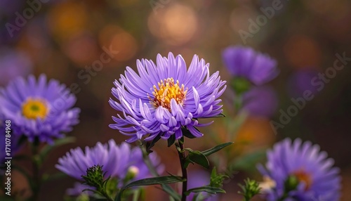 © Than, Obraz premium Vibrant purple aster flowers blooming gracefully in soft, natural light
