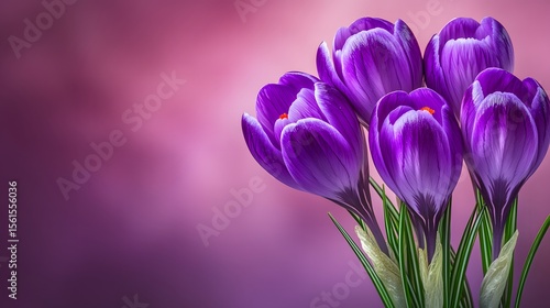 © Sumon, Fototapeta premium Vibrant Purple Crocus Flowers Closeup Spring Bloom