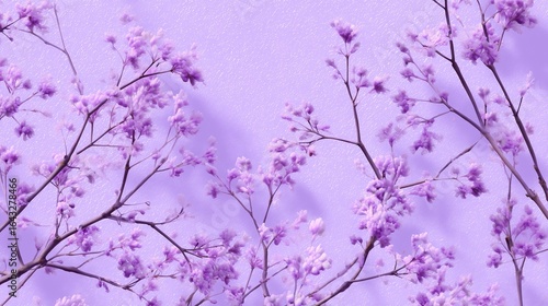 © fotofabrika, Obraz premium Vibrant purple flower branches highlighted against a soft pastel background creating a serene and calming atmosphere