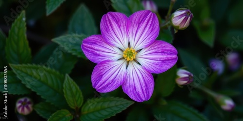 Fototapeta premium Vibrant purple flower petals and leaves, plant, flower
