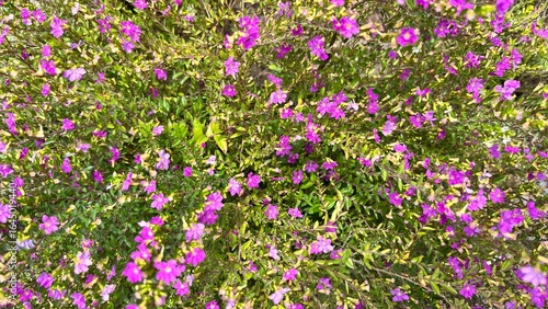 © Nisrina, Naklejka premium Vibrant Purple Flowers Blooming in Lush Green Foliage