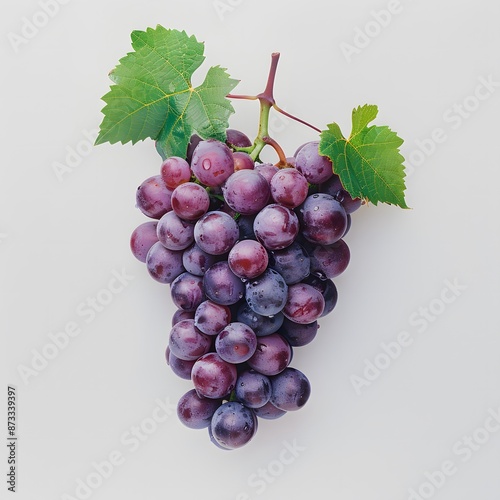 © Noppakun, Fototapeta premium Vibrant Purple Grapes Closeup on White Background