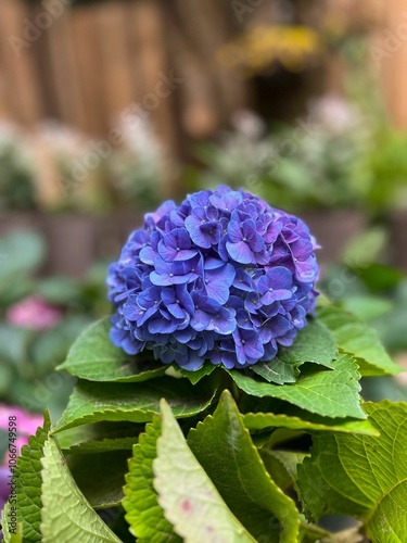 Obraz premium Vibrant purple hydrangea bloom in garden.