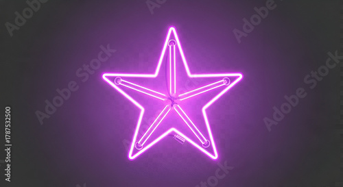 © Fariqul, Obraz premium Vibrant purple neon star glows against dark gray backdrop creating focal point