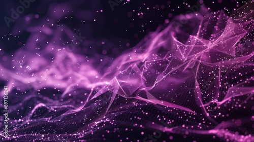 Fototapeta premium Vibrant purple particles form a captivating abstract backdrop merging technology and science, evoking futuristic communication and digital connectivity with dynamic colors and motion
