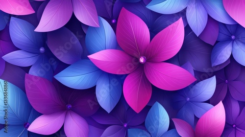 © Khofi, Fototapeta premium Vibrant Purple Pink And Blue Flowers Pattern Background
