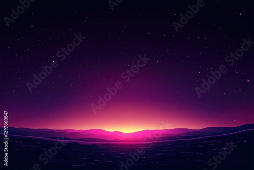 © ddwi, Fototapeta premium Vibrant purple sunset over a silhouetted landscape.