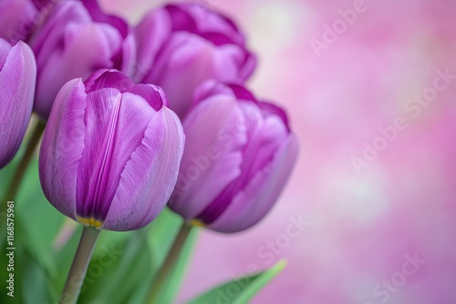 Fototapeta premium Vibrant Purple Tulips with Soft Pink Background for Floral Decoration and Design