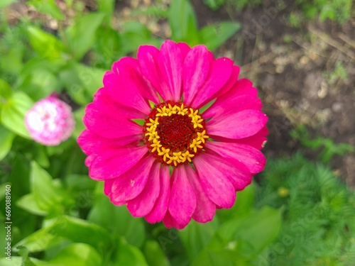 © Nick, Fototapeta premium Vibrant Purple Zinnia in Full Bloom