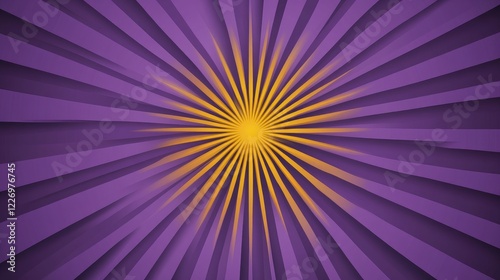 © Thanawat_Suesoypan, Obraz premium Vibrant Radial Abstract Background with Purple Rays and Central Yellow Sunburst Design