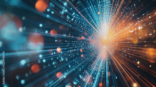 © tiantian, Fototapeta premium Vibrant Radial Colored Rays Emanating from Central Point. Dynamic and Energetic Visual Display Against Softly Blurred Backdrop in Mesmerizing Abstract Technology Background