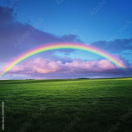 Obraz premium Vibrant rainbow arches over lush green landscape under a blue sky filled with...