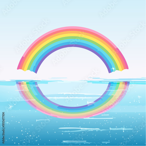 Fototapeta premium Vibrant rainbow arching above serene waters, creating a perfect, colorful reflection