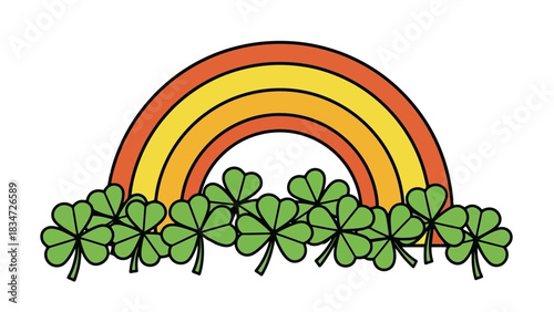 Naklejka premium Vibrant Rainbow Arching Over Lush Green Clover Patch, Symbolizing Luck and Good Fortune