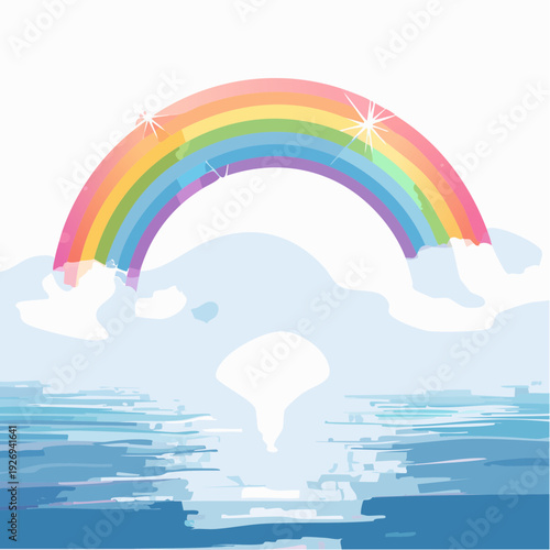Fototapeta premium Vibrant Rainbow Arching Over Water with Sparkling Clouds, A Symbol of Hope...