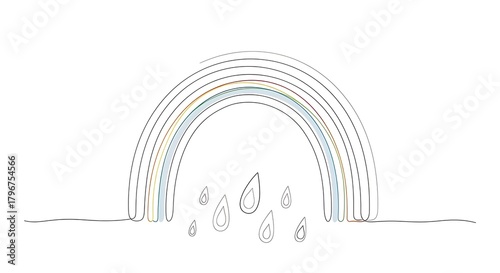 Fototapeta premium Vibrant rainbow arcs gracefully over falling raindrops, symbolizing hope and new beginnings with a clean, modern artistic style.