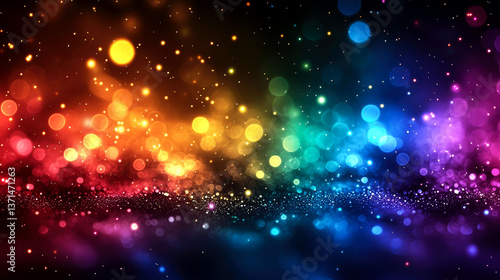 Naklejka premium Vibrant Rainbow Bokeh Background: Sparkling Lights and Shimmering Textures