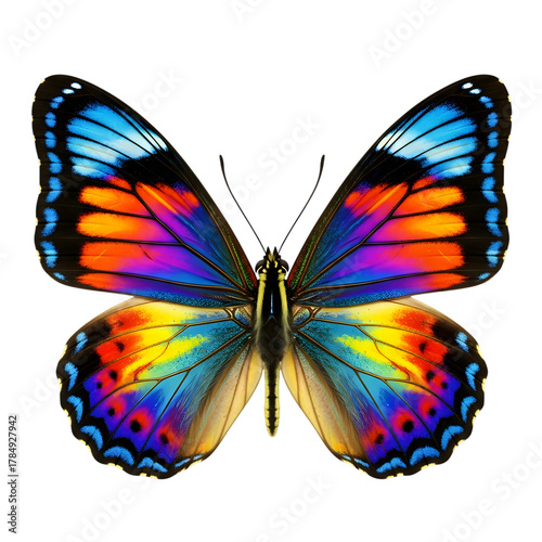 © KhadizaAkther, Obraz premium Vibrant rainbow butterfly with detailed wings on a black background