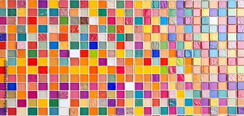 © Prisana, Fototapeta premium Vibrant rainbow ceramic tile mosaic background, construction, background