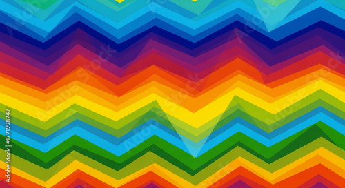Obraz premium 'Vibrant Rainbow Chevron Pattern with Layered Colors and Geometric Shapes,...