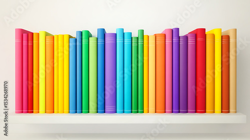 Obraz premium Vibrant Rainbow-Colored Books Arranged on a White Shelf