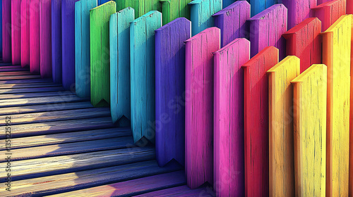 Fototapeta premium Vibrant rainbow colored fence with striking zigzag patterns that create an...