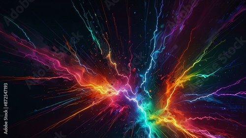 Obraz premium Vibrant rainbow colors dynamic lightning streaks abstract