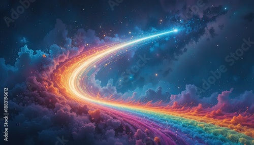 Fototapeta premium Vibrant rainbow comet streaking through colorful clouds