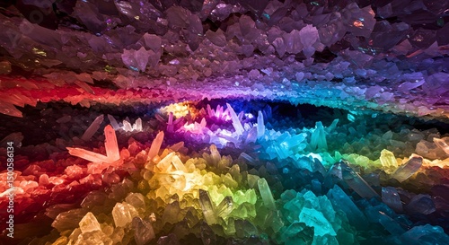 Obraz premium Vibrant Rainbow Crystal Cave A Mesmerizing Display of Colorful Gemstones and...