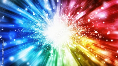 Naklejka premium Vibrant rainbow explosion with bright light and sparkles.