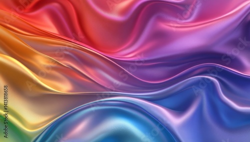 © Kasim, Obraz premium Vibrant rainbow fabric flowing in waves.