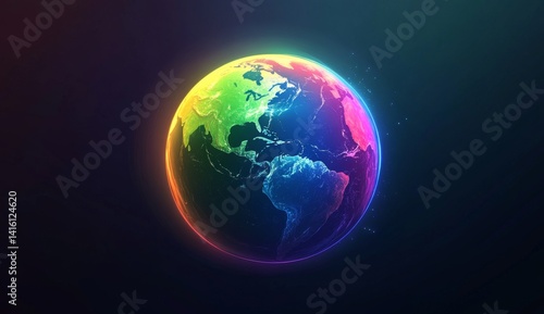 © Hasni, Fototapeta premium Vibrant rainbow glowing Earth globe.