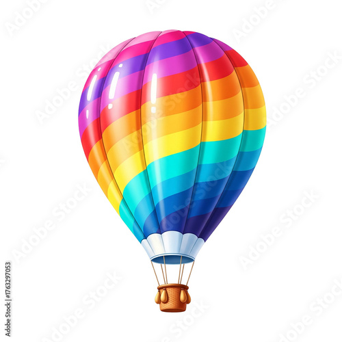 © ZeZe, Naklejka premium Vibrant Rainbow Hot Air Balloon Illustration Isolated on White Background