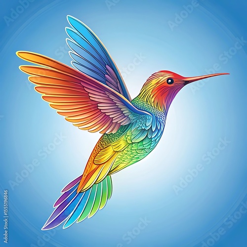 Obraz premium Vibrant Rainbow Hummingbird in Flight: Artistic, Whimsical, and Joyful Design.