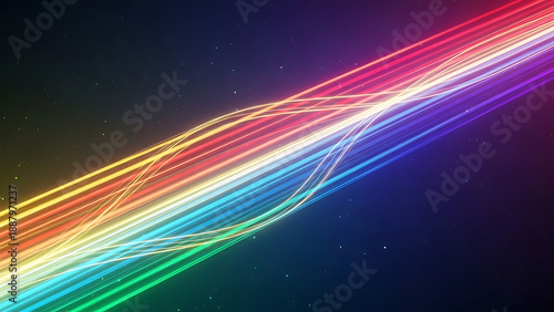 © Rumaiya, Fototapeta premium Vibrant rainbow light trails streak across starry night sky