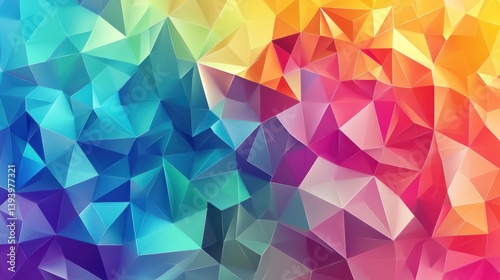 © Randu, Obraz premium Vibrant rainbow low-poly geometric background texture for website design