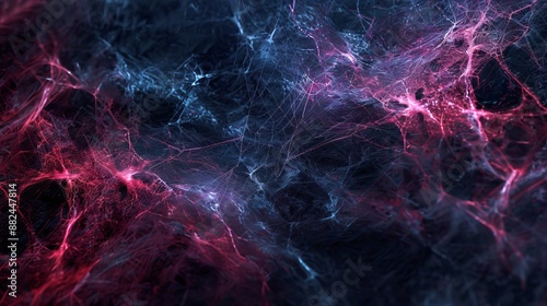 © Anzhela, Obraz premium Vibrant rainbow neon cobweb background featuring thin threads in a minimalist flat lay style